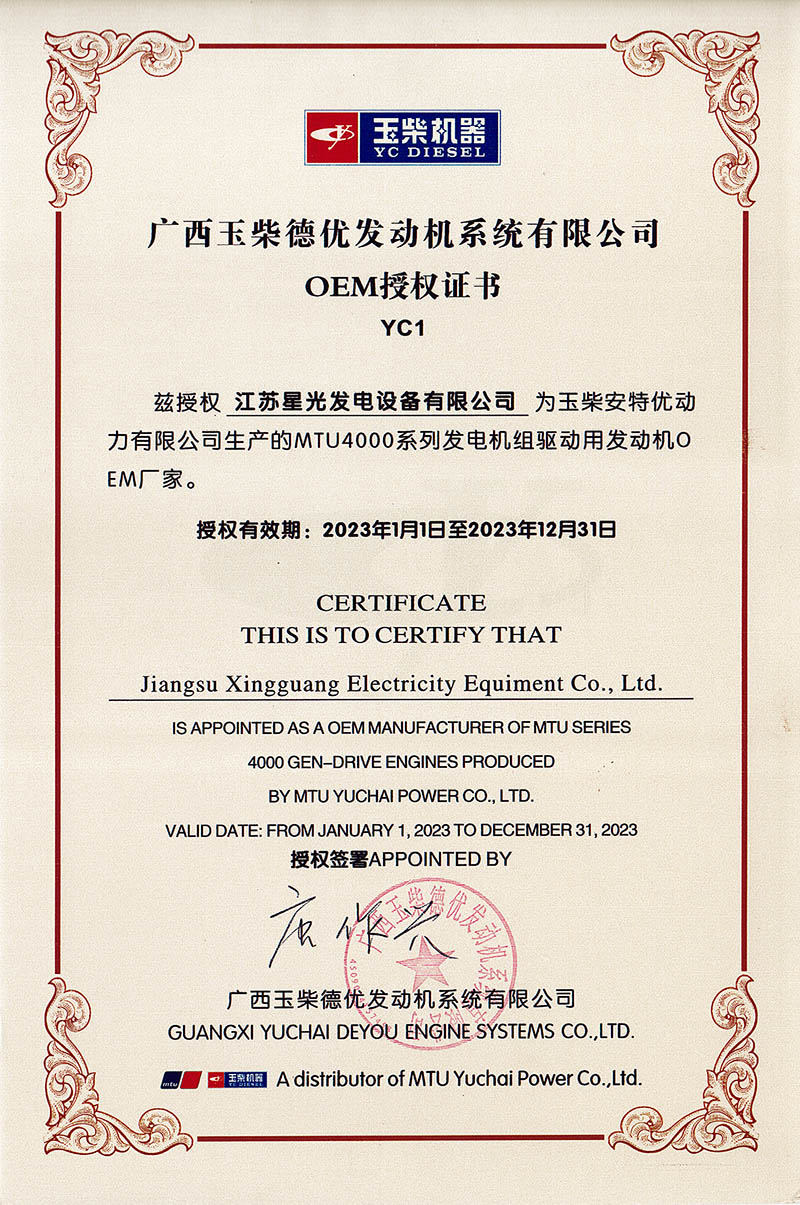 2023年玉柴安特優(yōu)MTU授權書