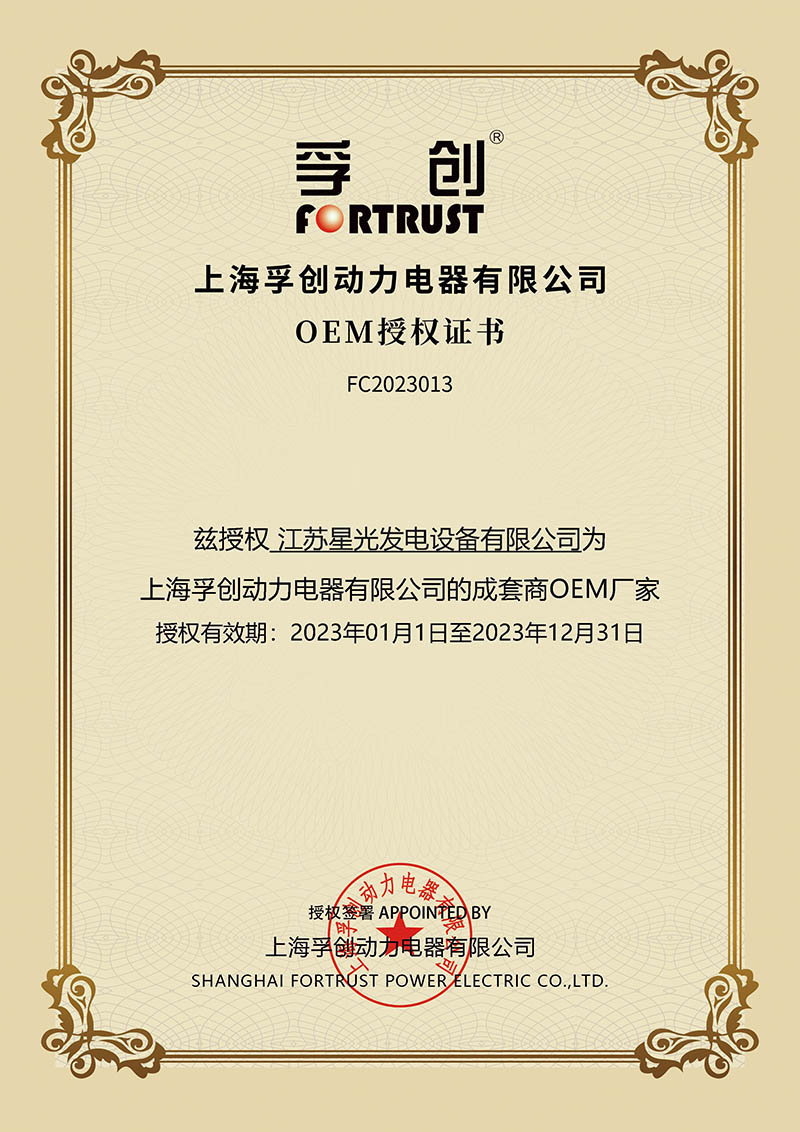 上海孚創(chuàng)動力電氣有限公司OEM授權證書