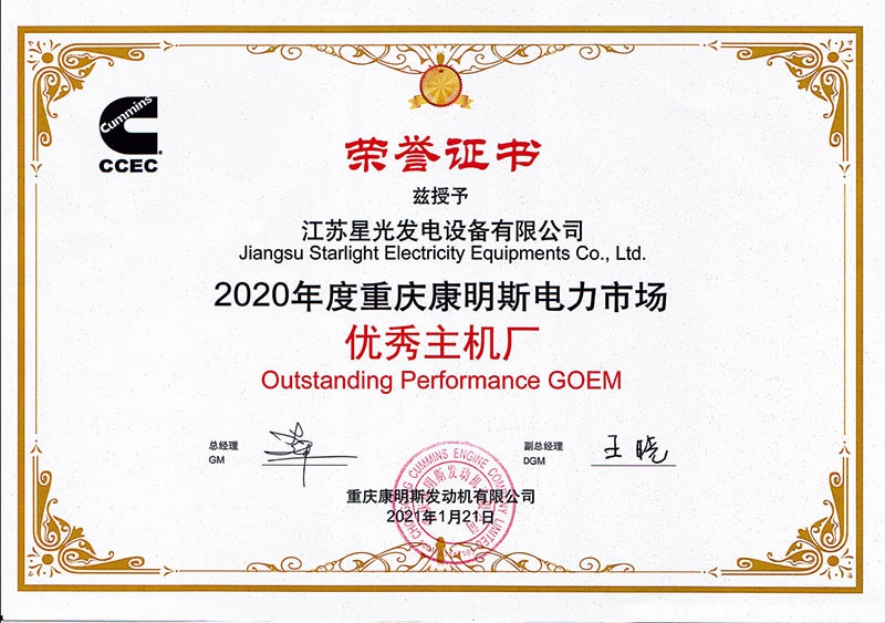 康明斯電力市場(chǎng)突出業(yè)績(jī)獎(jiǎng)