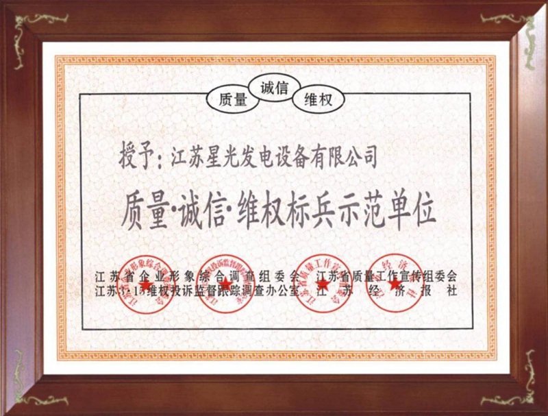 江蘇重質(zhì)量、講誠(chéng)信、創(chuàng)品牌三滿意示范單位榮譽(yù)